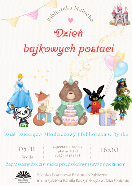 Zapraszamy dzieci w wieku 3-6 lat wraz z opiekunem na listopadowe zajęcia Biblioteki Malucha. Obowiązują zapisy pod telefonem 74/6464645.
